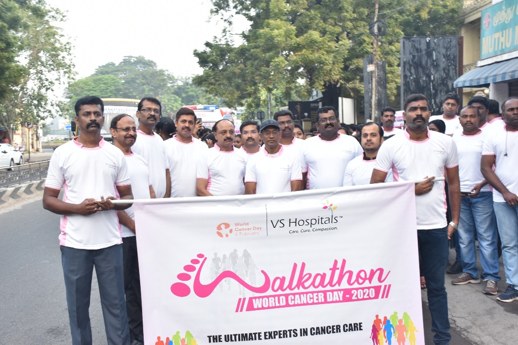Chennai, February 4, 2020:VS Hospitals today conducted a Walkathon to commemorate World Cancer Day2020.VS Walkathon was an initiative to raise awareness on cancer. Flagged off by Mr.AmpaPalaniappan, Managing Director, Ampa Skywalk, it saw participation of people from various walks of life, representing different age groups and professions.