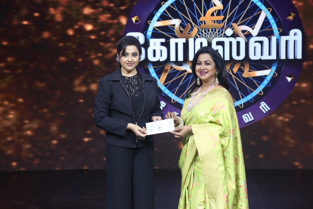 The popular star, who began her long career as a child artist, promises to dazzle Kodeeswari’s fans with her quick wit and astuteness. She and hostess Radikaa left the audience in splits as they recollected tales from all the movies they had done together. Radikaa began the episode by calling her MeenuKutti, leading to a ROTFL experience for everybody.