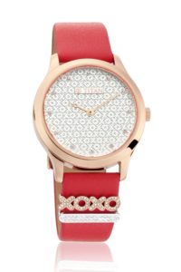 The watch dials have 3 different patterns – XOXO, knurled and heart and are encased in silver and rose gold cases.