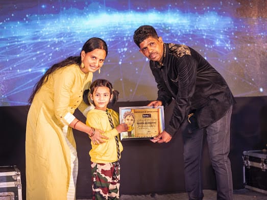 The child prodigy, Miss Mahisha Manikandan of LKG, V-KIDS, Nolambur, has bagged the Excellence Award for her extraordinary performance in Western Dance for the U-8 category, recently. She was honoured by the organiser, Mr.M Edwin, the Founder and Artistic Director of Footloose.