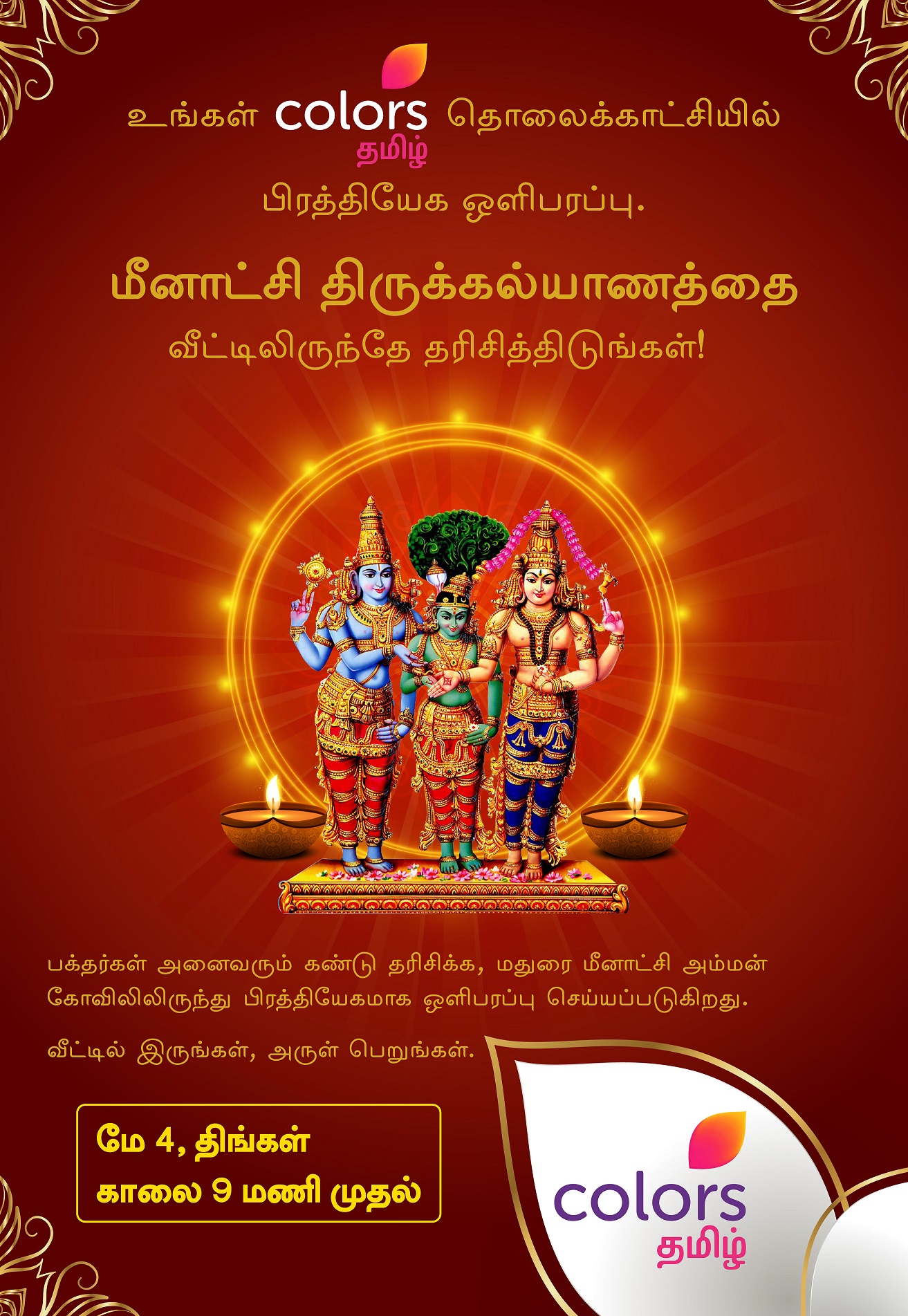 மதுரை மீனாட்சி அம்மன் தெய்வீக திருக்கல்யாண உற்சவத்தை உங்கள் வீட்டிற்கே கொண்டு வரும் கலர்ஸ் தமிழ் தொலைக்காட்சி நாளை காலை 9 மணிக்கு கலர்ஸ் தமிழ் தொலைக்காட்சியில்…