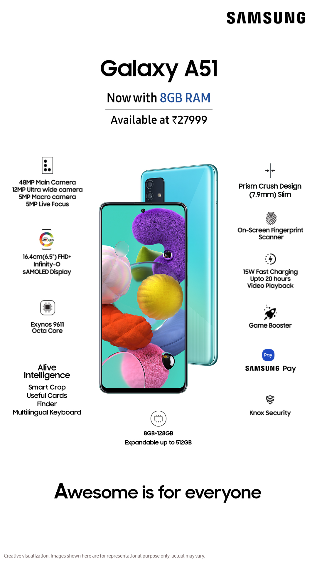 Samsung launches new Variant of Galaxy A51 at INR 27,999 in India!