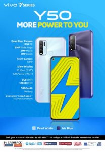 Chennai: vivo, the innovative global smartphone brand, today announced the launch of the all-new vivo Y50 in India. The latest addition in the youthfulY-series portfoliois equipped with 8GB RAM + 128GB ROM and ispowered by Qualcomm® Snapdragon™ 665 Mobile Platformprocessor. Priced at INR 17,990, the device will be available for purchase on vivo India E-store, Amazon, Flipkart, Paytm,Tatacliq, and across all partner retail stores.