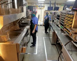 - Restaurant lobbies being cleaned and sanitized at regular intervals