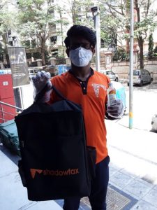 - Delivery bags being sanitized before the rider uses it