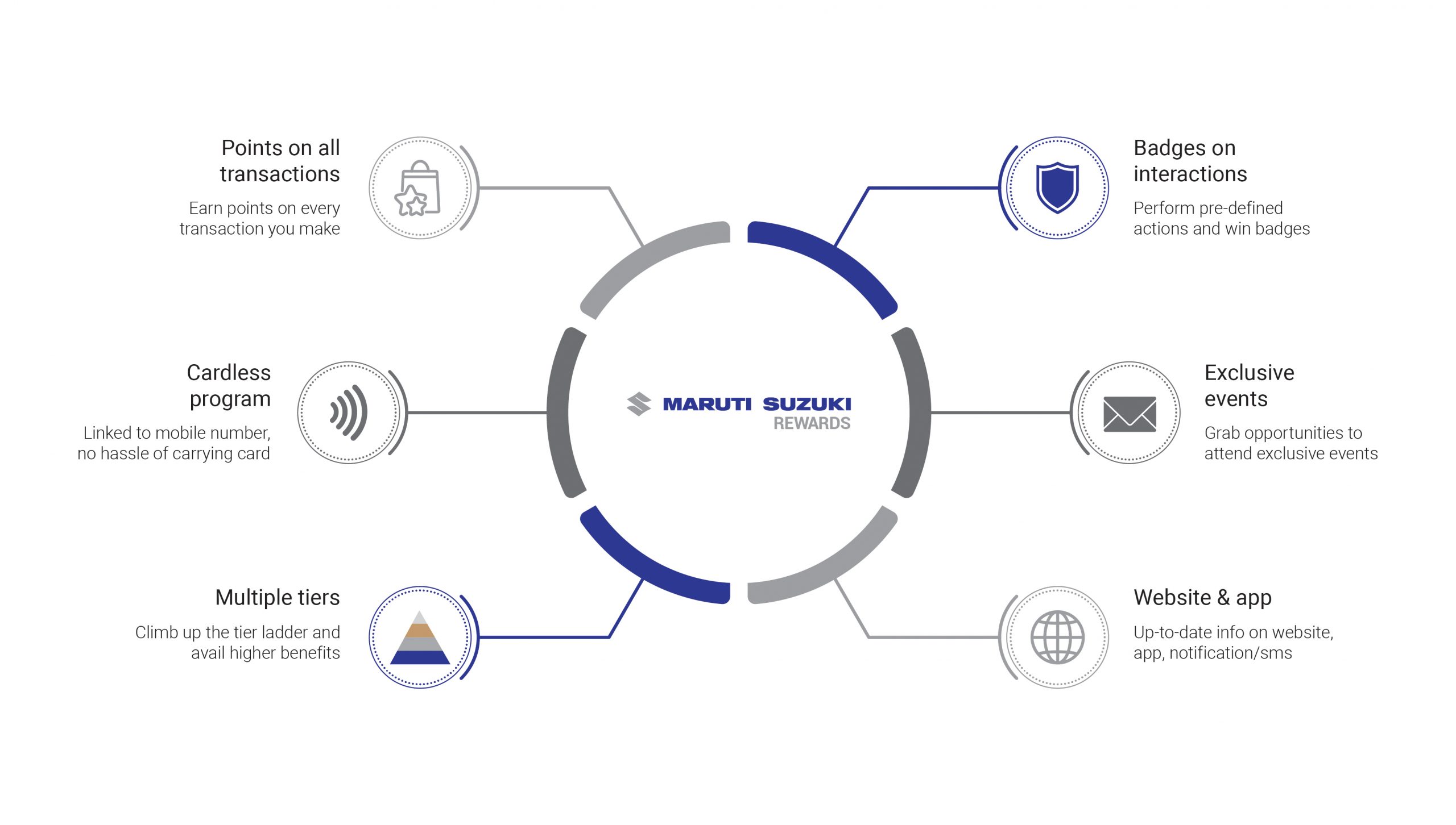 Maruti Suzuki Rewards is a comprehensive program that comes with a range of benefits on purchase of additional car, service, Maruti Insurance, accessories, customer referrals and several other ‘association benefits’ with the Company. Customers can now experience this digitally supported card-less program with the help of Maruti Suzuki Rewards website, and see their reward points growing with every interaction and transaction with Maruti Suzuki.