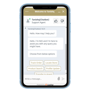 Live assisted chat- Customers, especially the first time online buyers, can be assisted by experts in real time on all their queries and help explore them and choose from a wide range of stunning designs, compare product attributes, and assist in resolving all queries immediately