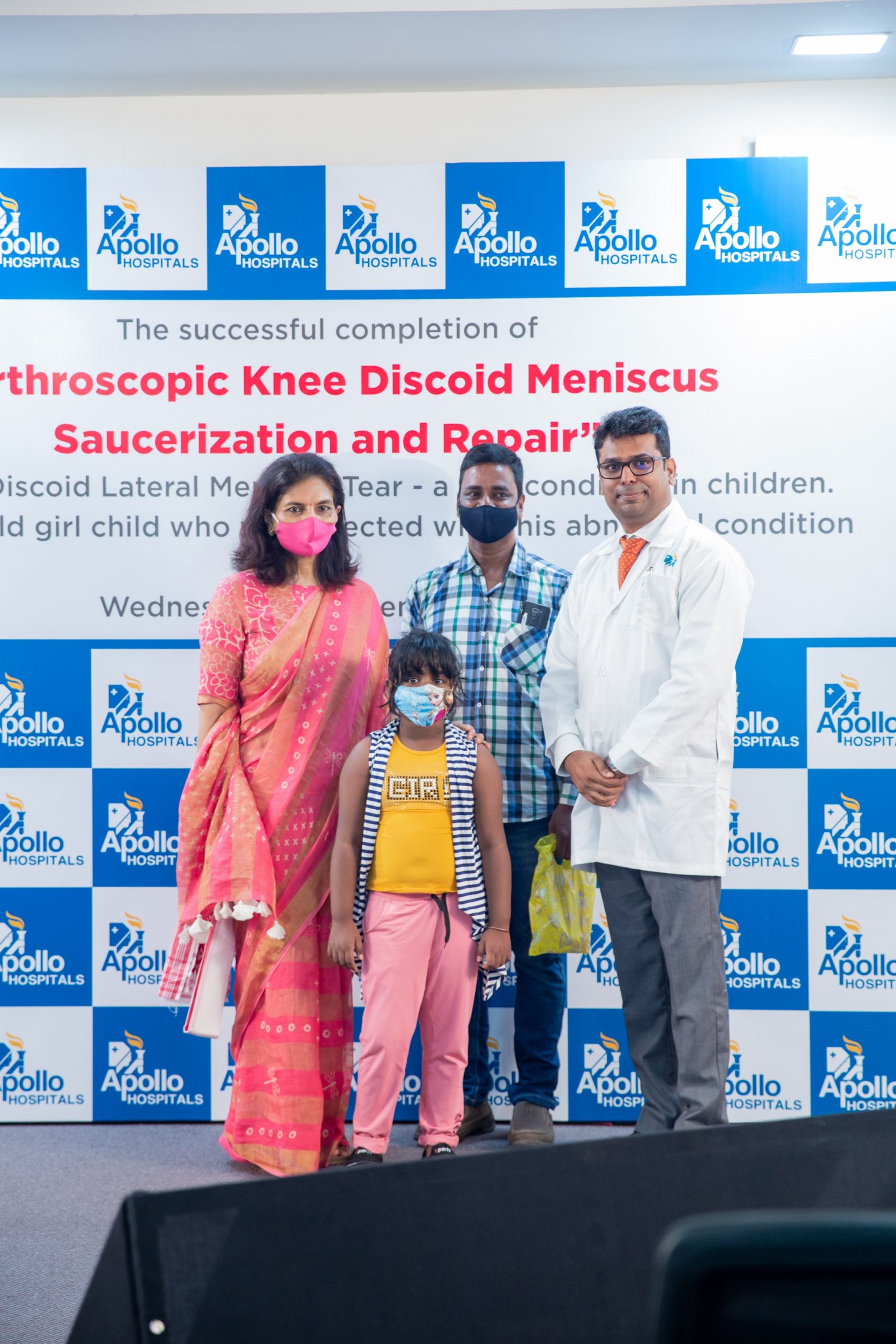 Chennai: Apollo Hospitals, Asia’s largest and most trusted multi-specialty chain of hospitals, has performed yet another procedure that transformed a girl child’s life. Dr. Vijay Kishore Reddy and team successfully completed a corrective procedure on a 7-year-old girl who was affected by Discoid lateral meniscal tear, an abnormal condition in children.