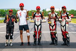 - Double podiums for Pune’s Sarthak (1st), Chennai’s Kavin (2nd) & Varoon (3rd) in IDEMITSU Honda India Talent Cup NSF20R Open class