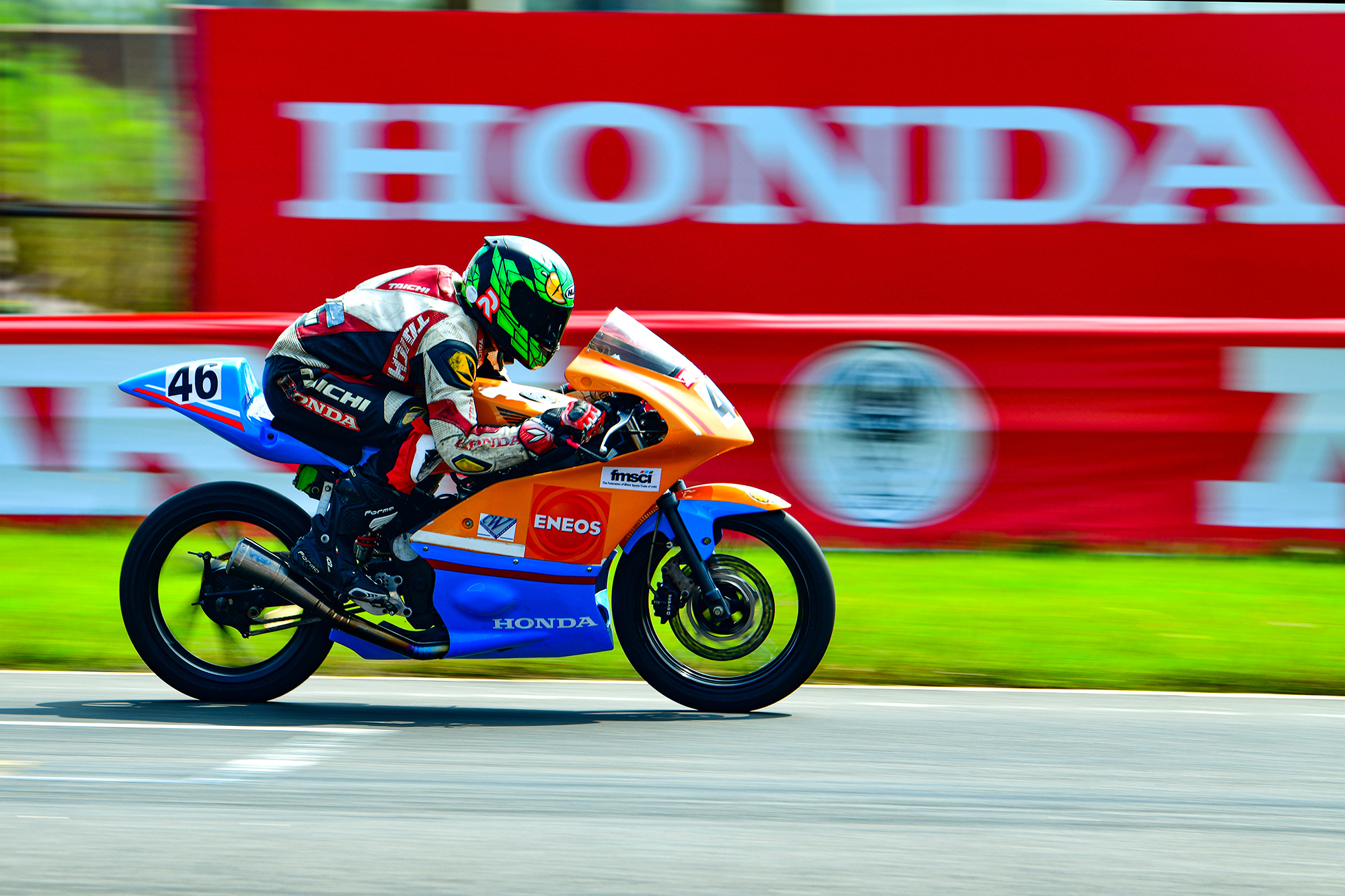 Marking their dominance, ENEOS Honda Erula Racing team now leads the ProStock 165cc class of with total 7 podiums including 2 wins. Today’s races saw Mathana Kumar stamping his first victory and a total of 4 podium finish while Rajiv Sethu bagged another podium finish for Honda in PS165cc category. Alongside the national championship, the IDEMITSU Honda India Talent Cup saw the energetic young guns Sarthak Chavan, Kavin Quintal & Varoon S leading at top 3 in the NSF 250R open class whereas Shyam Babu leads the CBR150R Novice class.