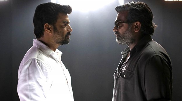 Tamil filmmaker duo Pushkar-Gayatri’s riveting action thriller, Vikram Vedha (2017) takes inspiration from the Indian folktale Baital Pachisi, to tell the story of Vikram (Madhavan), a police inspector who sets out to track down and kill Vedha (Sethupathi), a gangster. After Vedha voluntarily surrenders himself, he tells Vikram three stories which change his perceptions of good and evil.