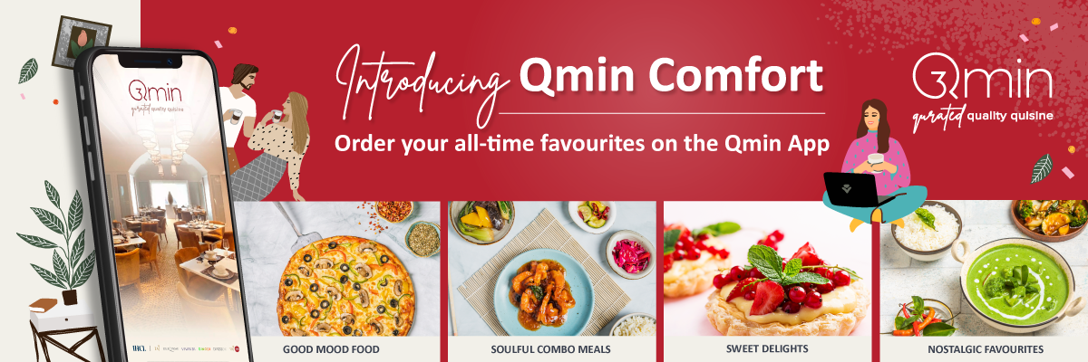 Qmin Comfort brings home the familiar flavours with a special selection of wholesome combination meals and nostalgic favourites. Currently available across eight cities in India, Qmin Comfort menus includes classics such as Kheema Pav, Murgh Malai Tikka, Pao Bhaji, sandwiches and pizzas. For a modern twist on evergreen flavours, Qmin Comfort offers a Chilli Paneer Comfort Bowl and Thai Chicken Curry Puff among others. For satiating the sweet tooth, order the Banana Walnut and Sticky Date Cake anytime of the day.