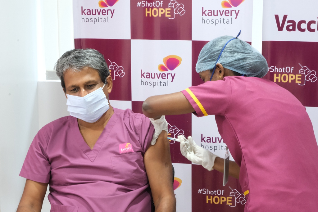 Dr Manivannan Selvaraj, Founder and Managing Director, Kauvery Group of Hospitals took the second dose of COVID -19 vaccine at Kauvery Hospital!