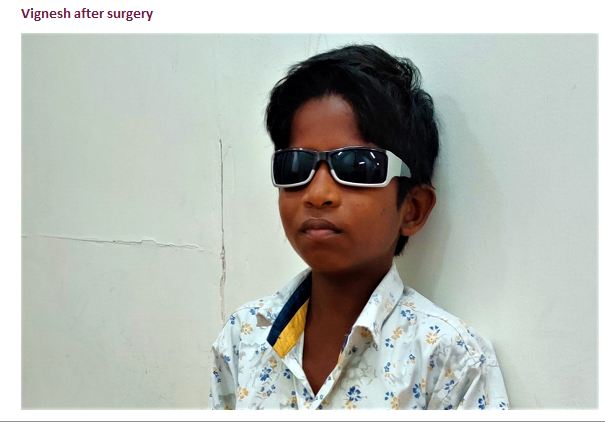 Vignesh is a 10-year-old and is diagnosed with congenital cataract (cataract at birth) in both eyes. His parents had taken him to the local hospital at the time but were turned away with the reason that Vignesh could not be operated since he was a baby. With no medical aid to proceed further, Vignesh’s parents thought it is better to get him treated when he is a little older but soon realised that he may not be treated at all. As one of their relatives who was Vignesh’s uncle had a similar problem of poor vision which could not be treated.