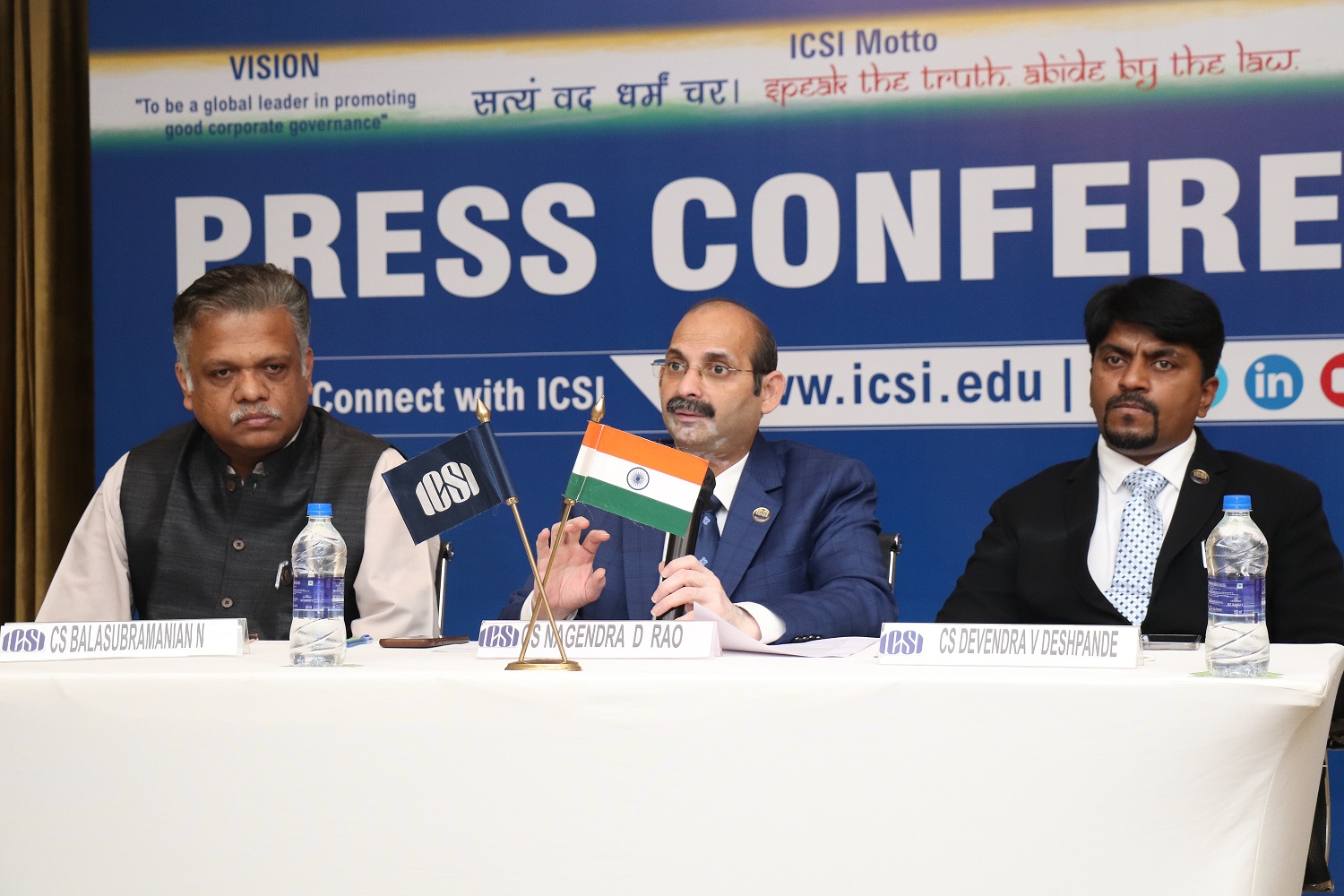 Shri Nagendra D. Rao, President and Shri Devendra V. Deshpande, Vice President of the Institute of Company Secretaries of India (ICSI) while addressing a press conference today stated that “ICSI has taken various initiatives including extensive career orientation, professional development programs, brand building, ICSI Digital revolution, Recognitions, Expanding Boundaries, Initiatives for Members, Initiatives for Students, Academic Collaborations, Social Initiatives, Fee waivers, extensive research projects, re-organization and infrastructure development, study of future role of CS and globalization of profession”.