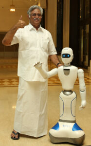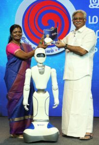 Dr. Ra. Arjunamurthy, Party President, IMMK introduced the ‘Robot’ symbol which was specially designed using the ‘Augmented Reality’ technology. This Robot said that it will be involved in garnering votes in support of its party which took everyone by surprise. A demonstration was also shown by the Robot as ‘how will it meet the voters?’
