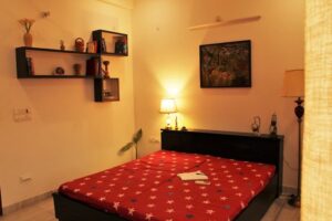 This is the perfect place to relax after a day full of hectic Holi celebrations. The 1-bedroom apartment is in a gated complex, replete with all contemporary facilities, ensures every need of guests will be taken care of.