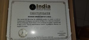 கடந்த வருடம் 2020 ஆகஸ்ட் 15ஆம் நாள் வில் வித்தையில் 3.30 நிமிடத்தில் 2252 அம்புகள் எய்து உலக சாதனை படைத்துள்ளார். இதனால் இந்தியா புக் ஆப் ரெக்கார்ட்ஸ் மற்றும் ஏசியா புக் ரெக்கார்டிலும் இவர் பெயர் இடம் பெற்றுள்ளது குறிப்பிடத்தக்கது.