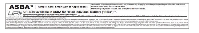 DISCLAIMER CLAUSE OF SECURITIES AND EXCHANGE BOARD OF INDIA (“SEBI): SEBI only gives its observations on the offer documents and this does not constitute approval of either the Offer or the specified securities stated in the Offer Document. The investors are advised to refer to page 341 of the RHP for the full text of the disclaimer clause of SEBI