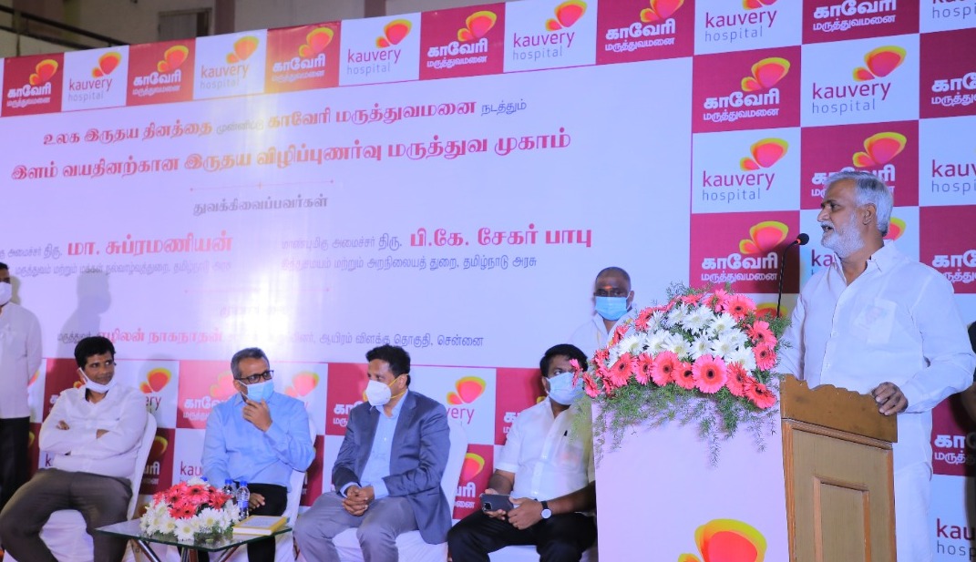 Chennai, 29th September: To observe World Heart Day Kauvery Hospital, one of the leading healthcare chains in Tamil Nadu launched free health camps. The campaign which will reach out to more younger population (below 50 years), aims to identify cardiac risks and abnormalities thereby encouraging people to lead a healthy life. The initiative was launched by Thiru P K Sekar Babu, Minister of Hindu Religious and Charitable Endowments Department and Dr Ezhilan Member of the Legislative Assembly of Tamil Nadu.