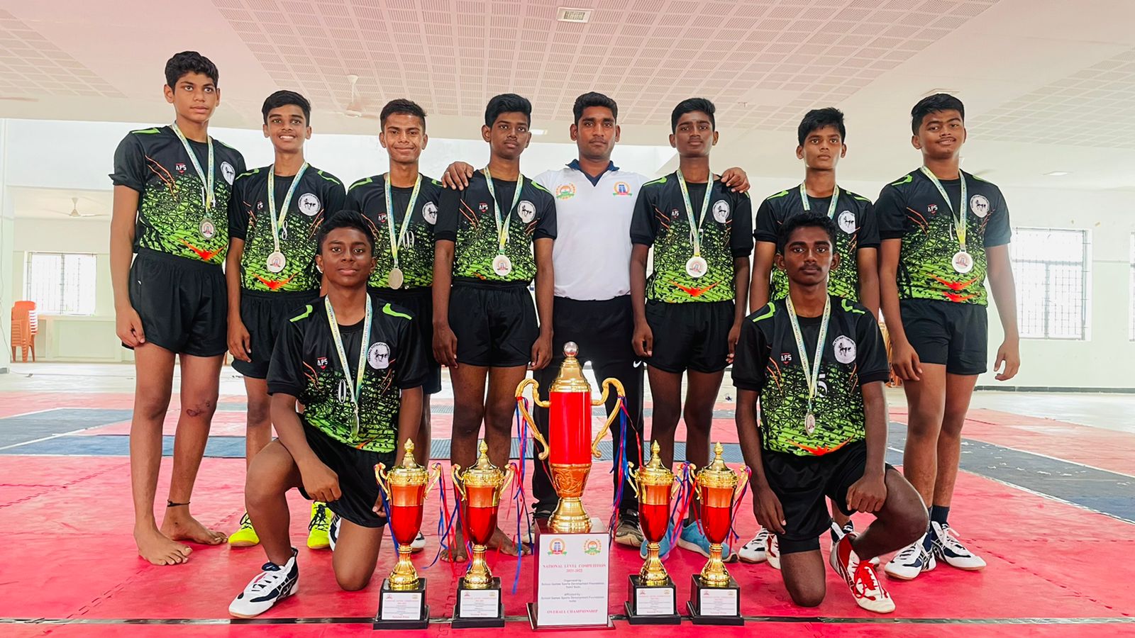 The Kabaddi (U-14) Boys Team of Velammal Vidyalaya, Parthipattu ensnared the runners title in the National Level Competition -2021 held at the Builders Engineering College, Nathakadaiyur, Erode recently.