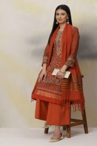 Terracotta and Orange Poly cotton straight Suit Set: INR 3,995