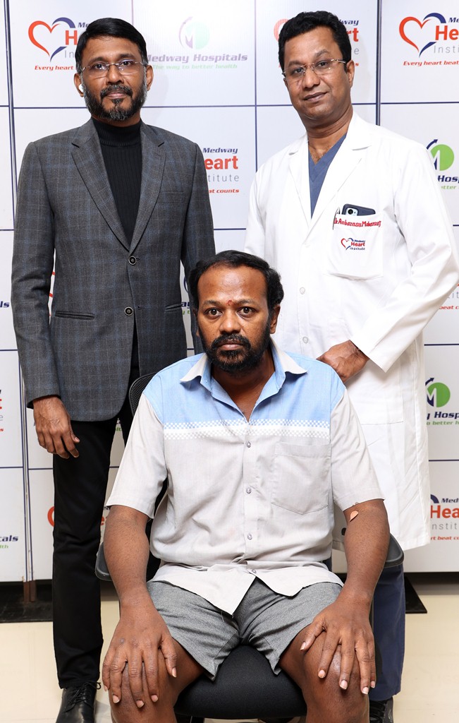 Dr. T. Palaniappan, Chairman & Managing Director, Medway Hospitals in his appreciation said, “These kinds of complex cases are performed only at a few elite medical centers across the country, because it requires superior surgical skills and latest technologies. I am extremely delighted that Medway Heart Institute is one such specialized center with state-of-the-art infrastructure and team of experienced doctors and support staff, who meet the growing needs of such complex heart ailments. I congratulate Dr Anbarasu Mohanraj and his team for safely and successfully performing this complex surgery, thus saving the life of the patient, Rajkumar and giving him a new lease of life. He is recovering well post the operation and is on his way to good health”.