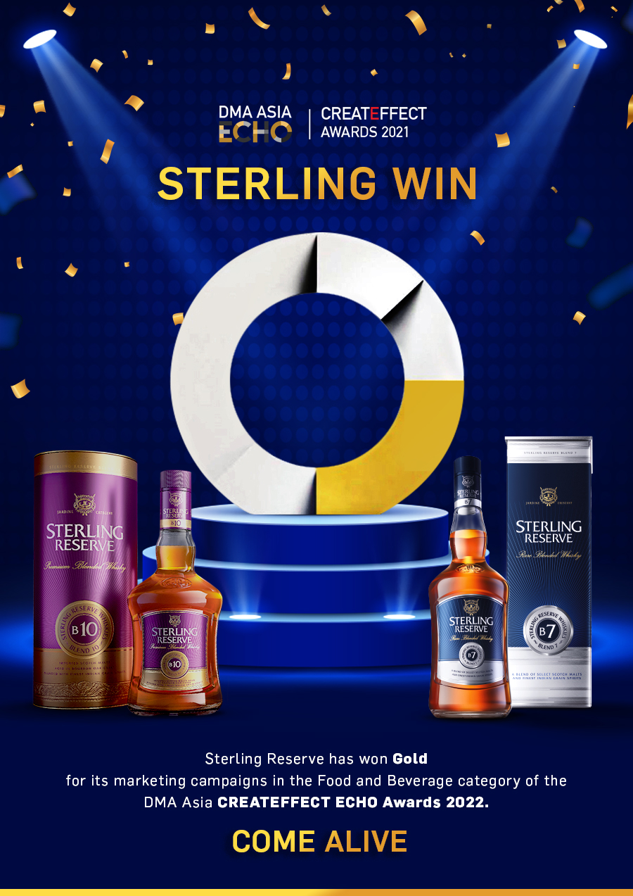 Chennai, 16 April 2022: Allied Blenders and Distillers Private Limited’s(ABD) premium offering, Sterling Reservehas won aGoldfor its marketing campaign ‘Chase the Next’ in the Food and Beverage category at the DMAasia Createffect ECHO Awards 2021-22.