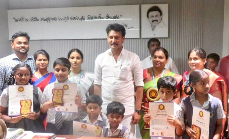 Recognising this remarkable record of 133 students reciting 133 Thirukkural Athigarams in 133 minutes they were awarded the TAMIL PARAI SATTRUM VIRUTHU from our Hon’ble Education Minister of Tamilnadu Thiru Anbil Mahesh Poyyamozhi at his office recently.