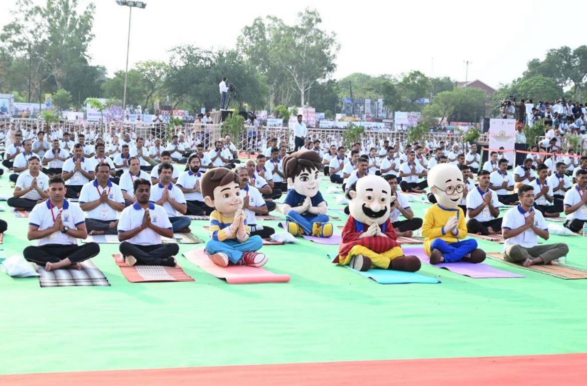 ~ With Vice President of India – Jagdeep Dhankhar, Shri Shivraj Singh Chouhan Honorable Chief Minister, Madhya Pradesh, and other dignitaries, Nicktoons Motu Patlu, Rudra and Abhimanyu were seen educating kids and 150,000 people with the benefits of Yoga~