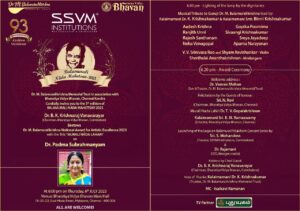 Dr.M.பாலமுரளிகிருஷ்ணா அவர்களின் 93-வது நட்சத்திர பிறந்த ஆஷாட விசாகம் நாளை முன்னிட்டு Dr.M.பாலமுரளிகிருஷ்ணா நினைவு அறக்கட்டளையின் கலையில் சிறந்தவருக்கான தேசிய விருது அறிவிக்கப்பட்டுள்ளது. 2023-கான முரளீ நாத லஹரி விருது மற்றும் ஒரு லட்ச ரூபாய் பரிசினை பரதநாட்டிய கலைஞர் Dr.பத்மா சுப்பிரமணியம் அவர்களுக்கு வழங்குவதில் பெருமை கொள்கிறது. இந்த விருது நிகழ்ச்சியினை Dr.M.பாலமுரளி கிருஷ்ணா நினைவு அறக்கட்டளையுடன் சென்னை பாரதீய வித்யா பவன் இணைந்து வருகின்ற ஜூலை 6-ந்தேதி மாலை 6 மணிக்கு மைலாப்பூர் பாரதீய வித்ய பவன் பிரதான அரங்கில் நடத்துகின்றன.