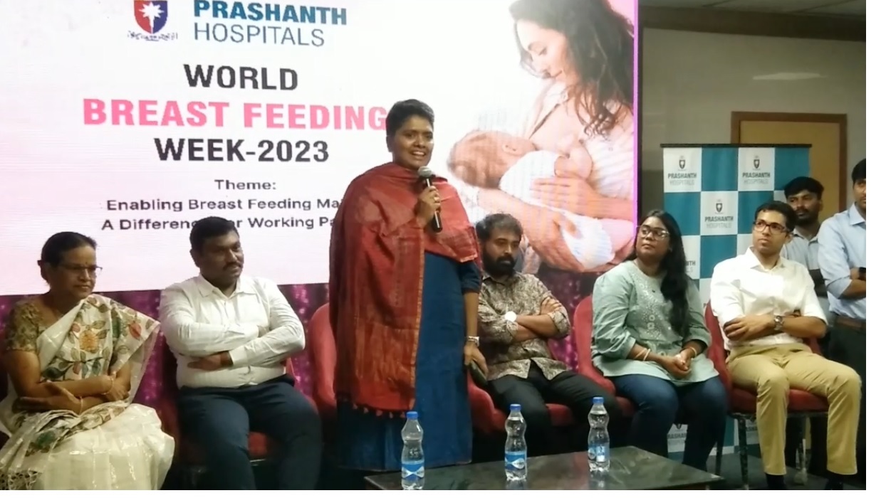 Speaking on the occasion, Dr. Geetha Haripriya Chairperson of Prashanth Group of Hospitals expressed her delight, stating, “We are pleased to have organized an impactful lineup of events and activities for working parents during World Breastfeeding Week. At Prashanth Hospitals, we firmly believe that the health and well-being of a newborn depend on the entire family’s collective effort and not just the mother. Our team of experts mentored and guided both mothers and fathers, ensuring they adopt the best practices for successful lactation and baby care.”
