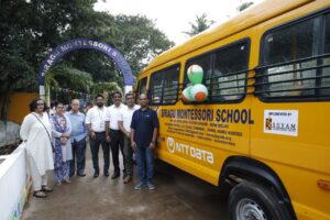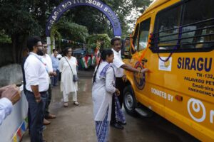 NTT டேட்டாவின் மூத்த துணைத் தலைவர் திரு.நிரஞ்சன் குமார் மற்றும் குழுவினர் 14.08.23 அன்று 20வது ஆண்டு விழாவை முன்னிட்டு பள்ளிக்கு பேருந்தை வழங்கினர்.