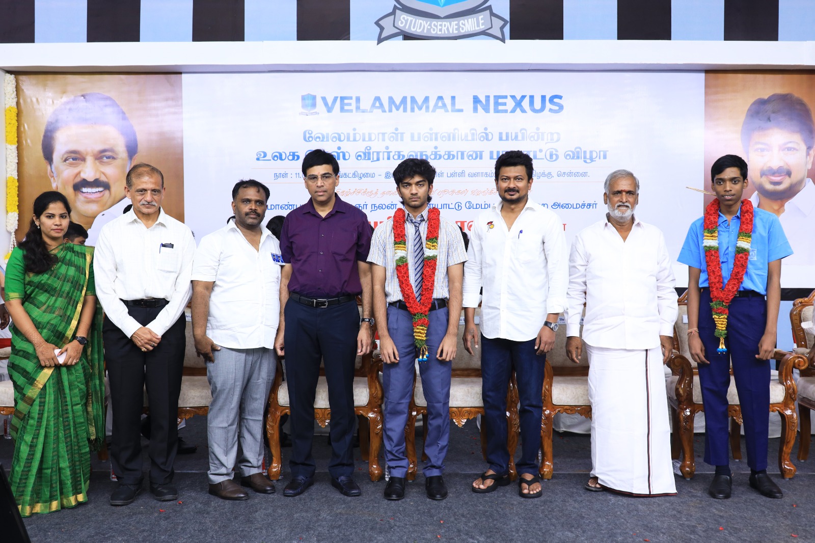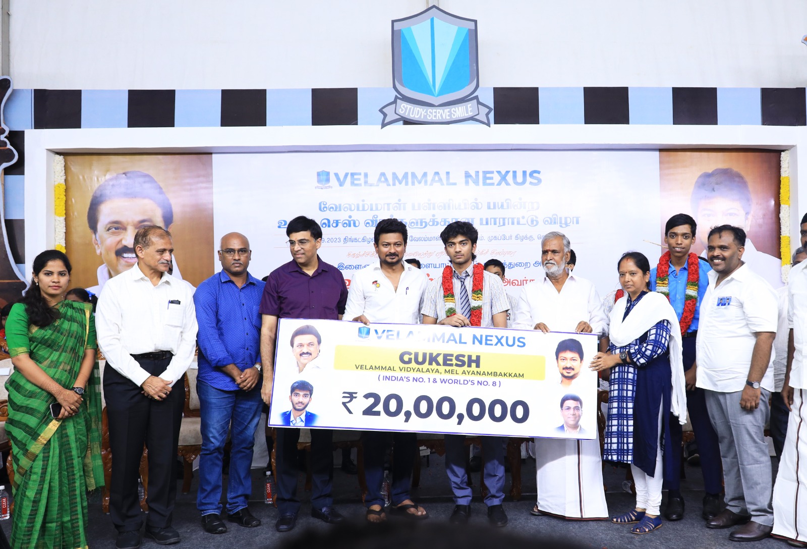நிகழ்ச்சியின் தொடக்கத்தில் சிறப்பு விருந்தினர்கள், செஸ் சாம்பியன்கள் மற்றும் அவர்களது குடும்பத்தினருக்கு சிறப்பான வரவேற்பு அளிக்கப்பட்டது. பெருமிதம் சூழ்ந்த இந்த நிகழ்வில் வேலம்மாள் நெக்ஸஸ் நிர்வாகம் சார்பில் சர்வதேச அளவில் சாதனை படைத்த செஸ் சாம்பியன்களுக்கு ரூ.60 லட்சம் பரிசுத்தொகையினை அமைச்சர் திரு. உதயநிதி ஸ்டாலின் வழங்கி கௌரவித்தார்.