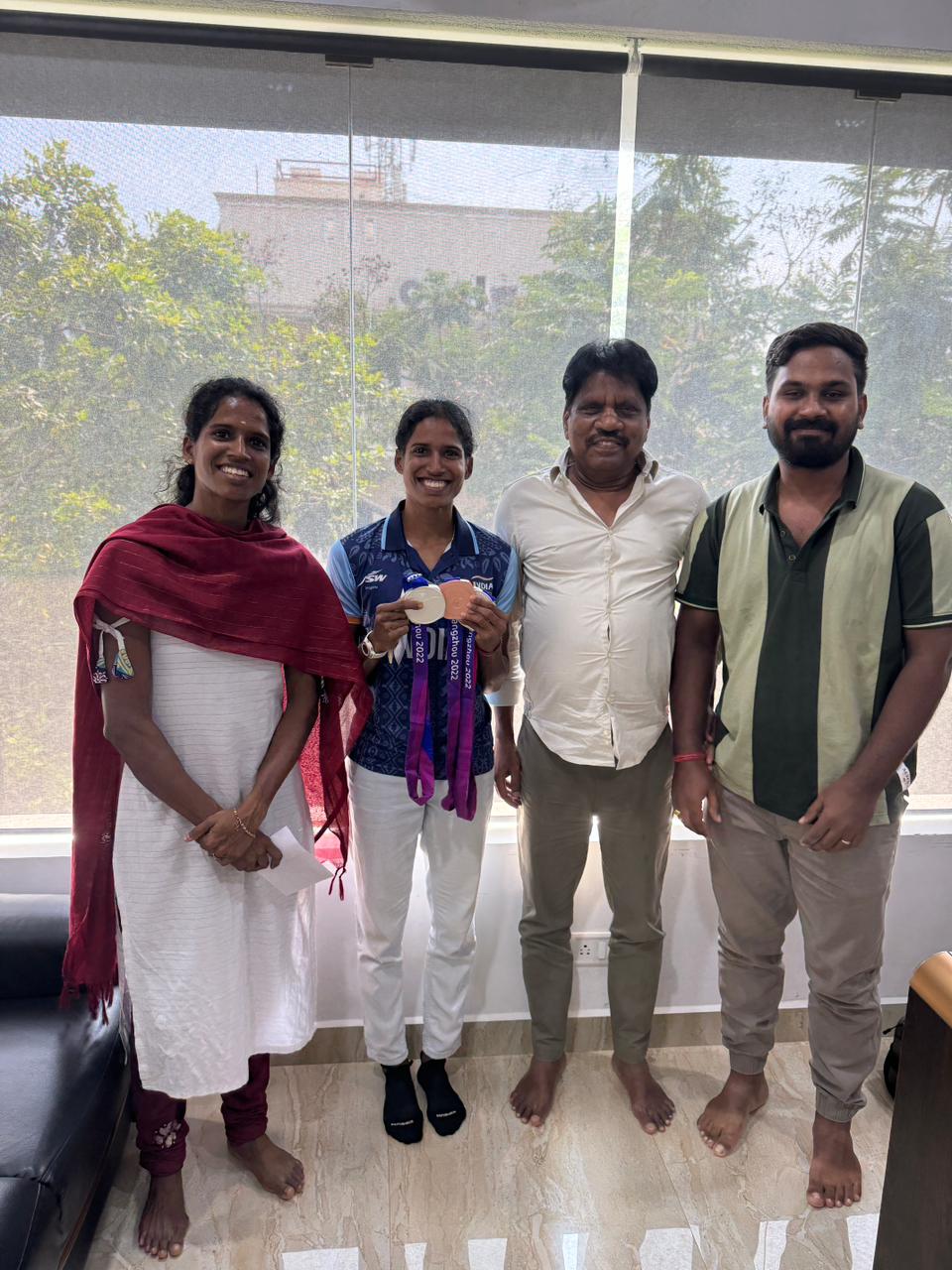 திரு M.செண்பகமூர்த்தி அவர்கள், சாதனை செய்த இந்த இரட்டை வீராங்கனைகளை அழைத்துப் பாராட்டியதுடன் அவர்களுக்கு நிதி உதவியையும் விளையாட்டு போட்டிகளுக்குக்குத் தேவையான உபகரணங்களையும் பரிசாக வழங்கி கௌரவித்துள்ளார்…தொடர்ந்து ஏழ்மை நிலையில் உள்ள விளையாட்டு துறையில் உள்ளவர்களுக்கு எப்போதும் தாங்கள் உதவுவோம் என்றும் மகிழ்ச்சியுடன் அவர்களை அனுப்பி வைத்தார் ..