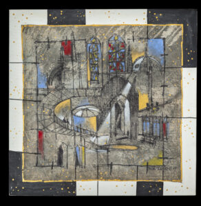 Building on a legacy of more than 125 art shows, Footnotes on Cinema offers an intimate reflection on Thota Tharrani’s memories and observations of cinema, shaped by his experiences on film sets as a young child accompanying his father, up until now. The art showcase houses over 25 paintings that evoke the magic of cinema from yesteryears, featuring film sets, lighting, and camera crews, all presented on frames made using repurposed materials such as old doors, window frames, chairs, and roofing elements. The sketches, rendered on gada cloth with sketch pens, vividly bring the enchantment of celluloid to life. These are small sketches created decades ago, and now after 30-40 years, they have been reimagined and transformed into large-scale artworks. They are not replicas of original film sets, but artistic reinterpretations inspired by them.