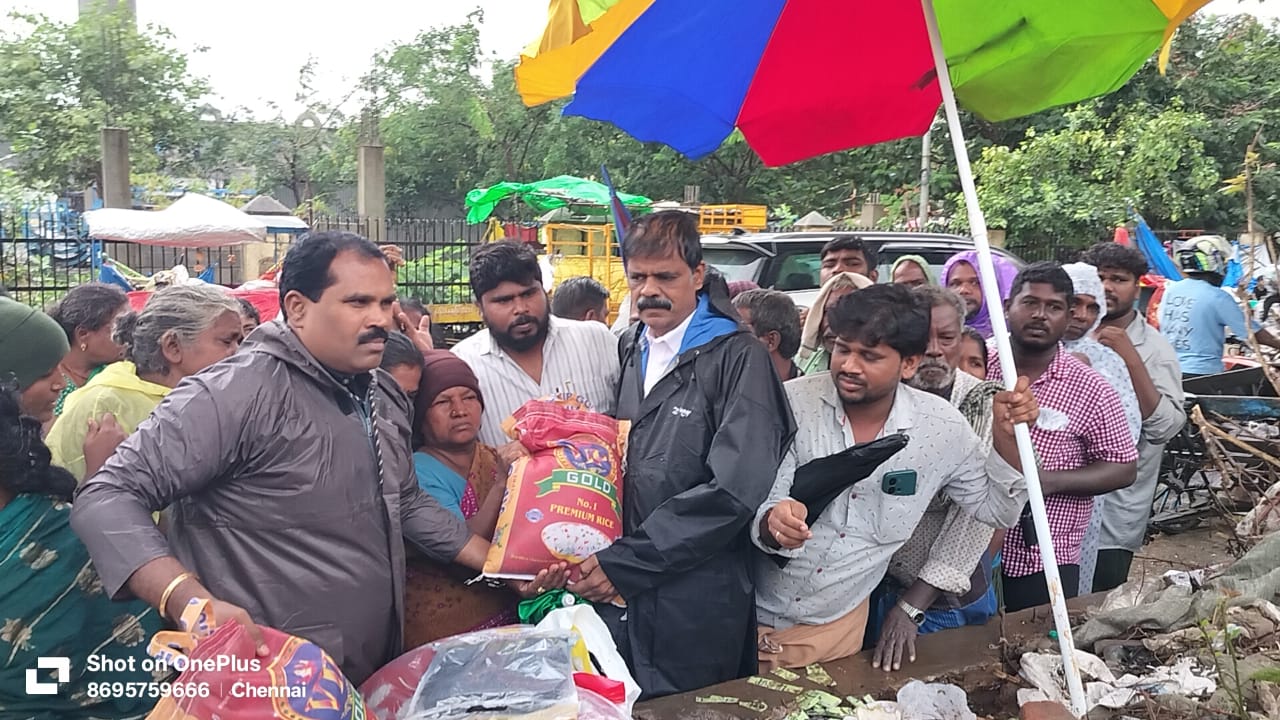 டிட்வா புயல் மழையால் கோயம்பேடு மார்க்கெட் பகுதிகளில் வேலை செய்யும் பலரும் கண்ணீரும் கவலையாக இருந்து வருகின்றனர். அவர்களில் தொழிலை இழந்த 10 ஏழைகளுக்கு தொழில் செய்து முன்னேற காய்கறிக்கடை, இட்லி கடை வைக்க 10 பேருக்கு தள்ளு வண்டிகள் கலப்பை மக்கள் இயக்க தலைவரும் புலி பட தயாரிப்பாளருமான பி.டி.செல்வகுமார் வழங்கினார்.