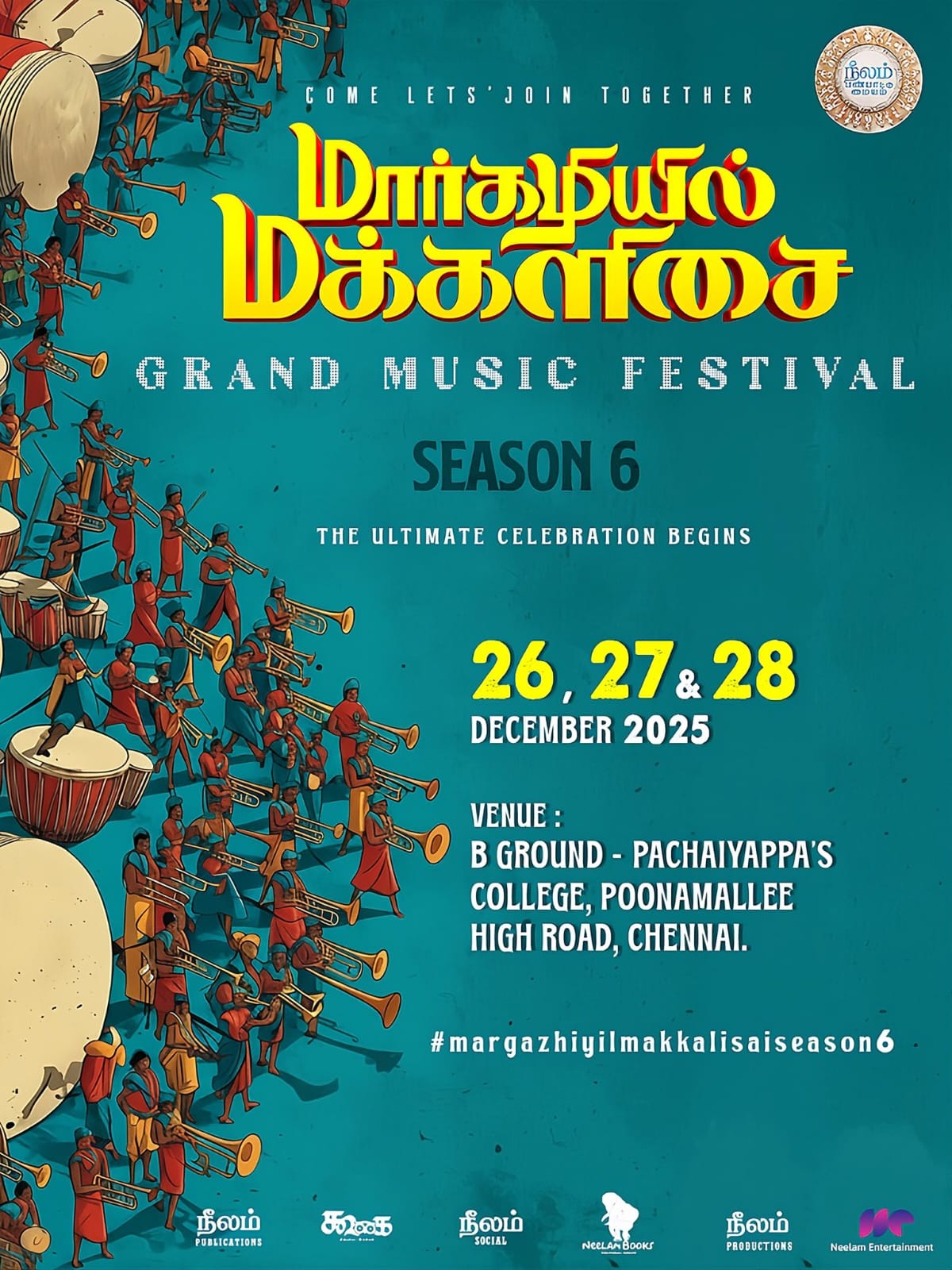 நீலம் பண்பாட்டு மையம் முன்னெடுப்பில் துவங்கப்பட்ட பிரமாண்டமான இசை நிகழ்ச்சியான ‘மார்கழியில் மக்களிசை’ ஆறாவது ஆண்டாக இம்முறை வரும் டிசம்பர் 26, 27 மற்றும் 28 ஆகிய தேதிகளில் சென்னை பச்சையப்பன் கல்லூரி மைதானத்தில் நடக்கவிருக்கிறது.
