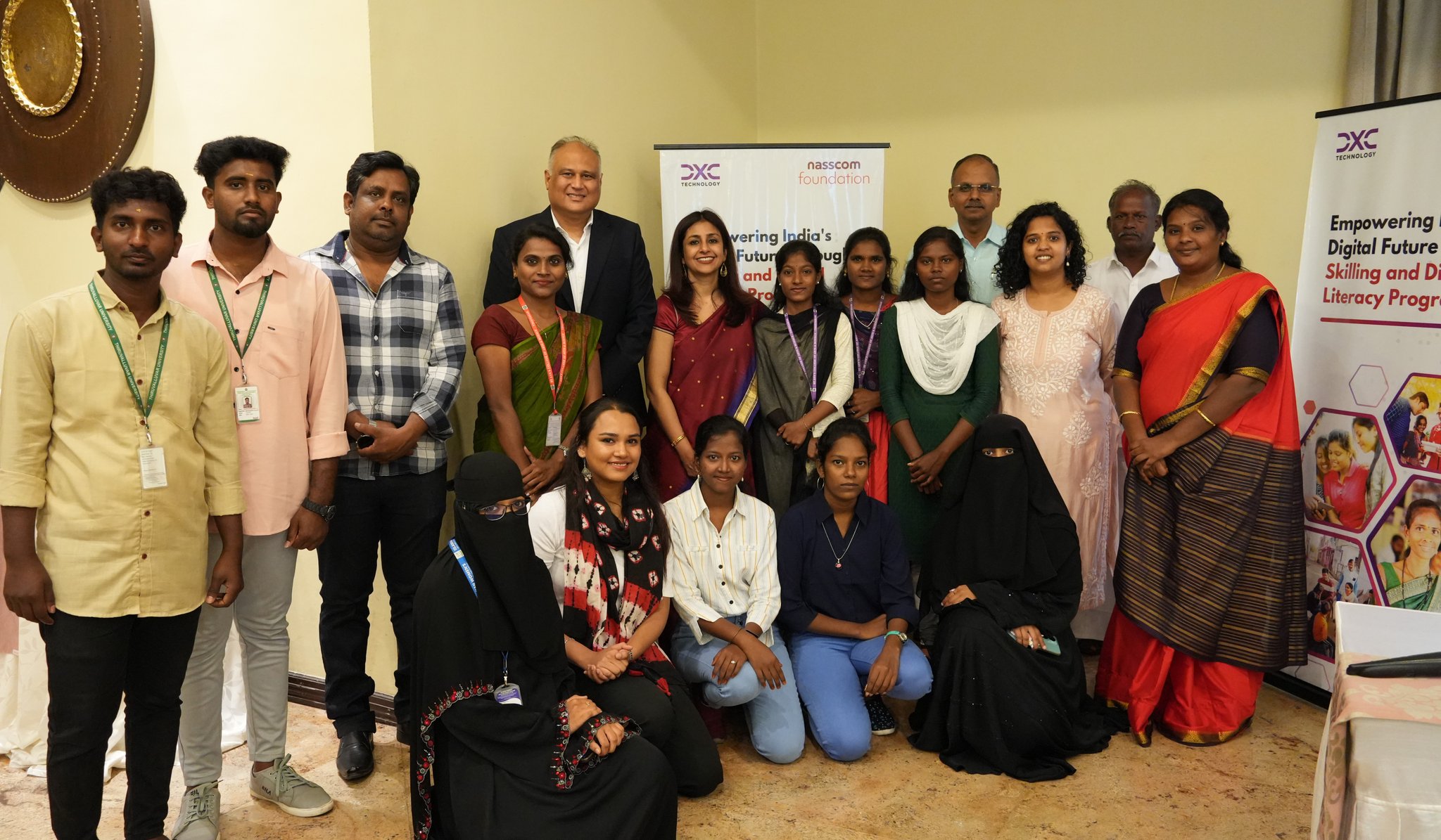 Nidhi Bhasin, CEO, Nasscom Foundation and Nachiket Sukhtankar, MD, DXC Technology along with youth empowered through the skilling and digital…